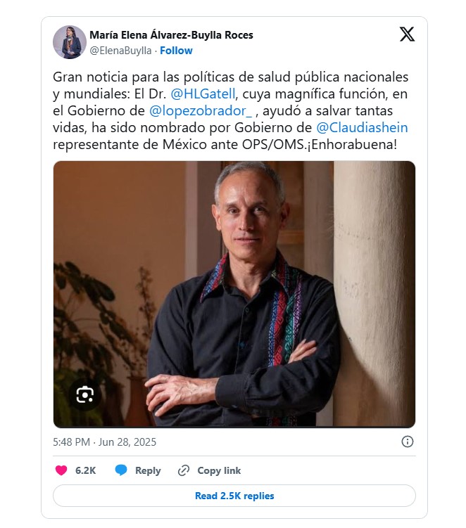 La exdirectora del Conahcyt, María Elena Álvarez-Buylla, felicitó desde el domingo en redes sociales a López-Gatell por su nombramiento.