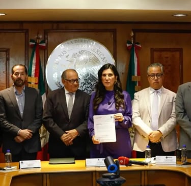 Entrega recepción a la presidenta de la Mesa Directiva, Kenia López Rabadán, de la iniciativa de reforma electoral enviada por la presidenta Claudia Sheinbaum a la Cámara de Diputados.