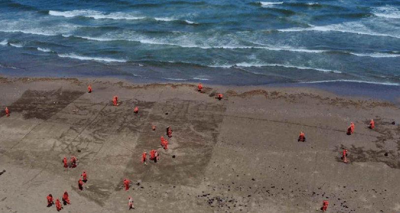 Asimismo, el Grupo Interinstitucional detalló en cuanto a la recolección, al corte del 30 de marzo se reportan: 42 toneladas recolectadas de contaminantes en playas en el día, 785 toneladas acumuladas, y 0.6 toneladas recolectadas en el mar en el día y 40.6 toneladas acumuladas.